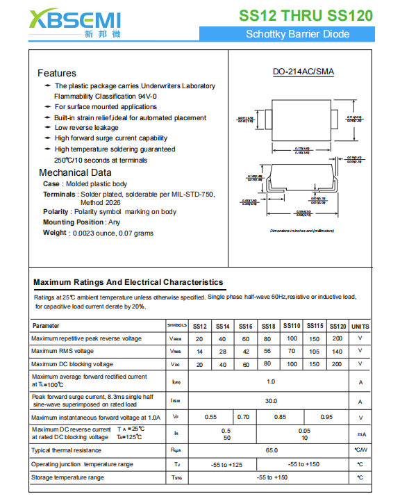 肖特基二極管SS16A規(guī)格書(shū)如下: